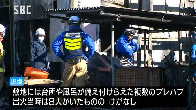 警察によりますと敷地には台所や風呂が備え付けられたプレハブが複数あり、出火当時は外国人従業員とみられる8人がいたということですが、けがはありませんでした。