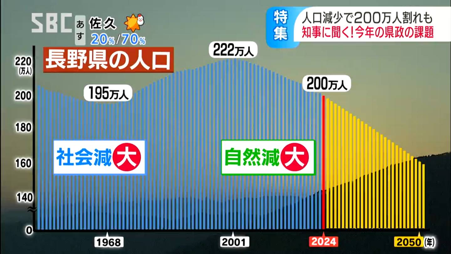 1月中にも200万人を割り込むと見込まれる長野県の人口。
