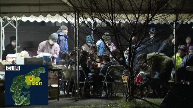 能登町の公民館には、近所に住む60人から70人が避難していました。食料も豊富にあるように見えますが…