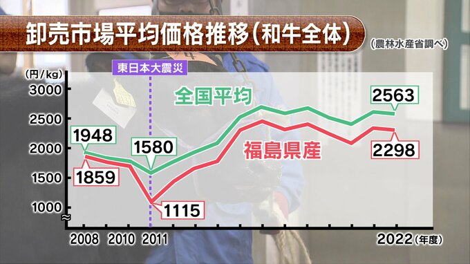 そして、いまだに原発事故の風評も残っています。県産牛の東京での取引価格は、震災後に比べると回復していますが、いまだに1キロあたり250円ほど全国平均を下回っています。