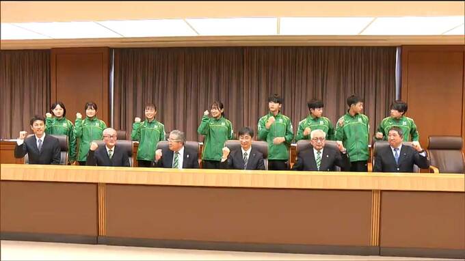 県庁を訪問したのは都道府県対抗駅伝に出場する中学生と高校生の選手8人です。選手の代表が抱負を述べると伊藤副知事が「県代表としての誇りを胸に力を発揮してほしい」とエールを送りました。