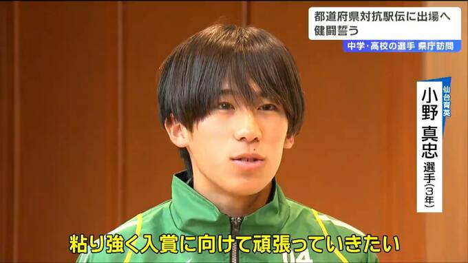 1月開催される都道府県対抗駅伝に宮城県代表として出場する中学生と高校生の選手が県庁を訪問し、健闘を誓いました。