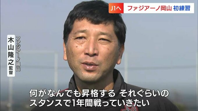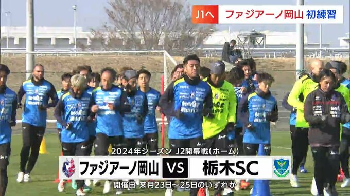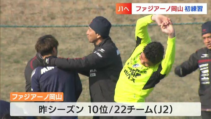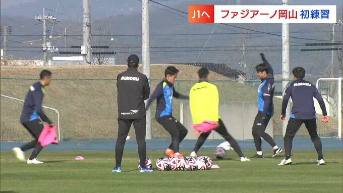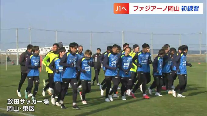 新チームが始動です。サッカーJ2・ファジアーノ岡山が、今シーズン初めてとなる練習を岡山市東区で行いました。