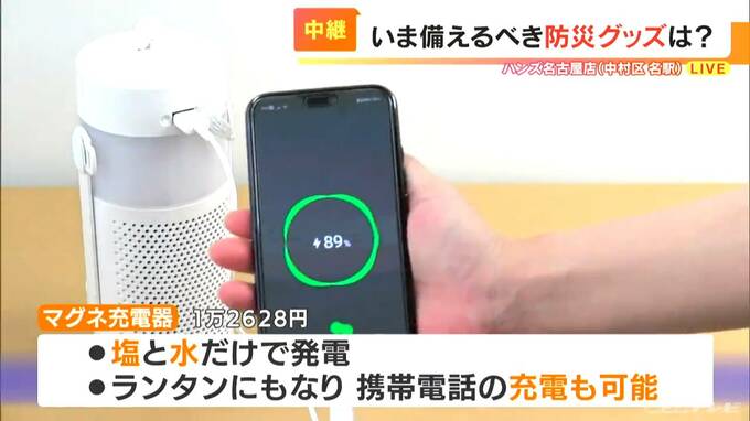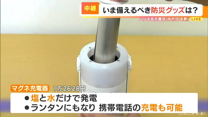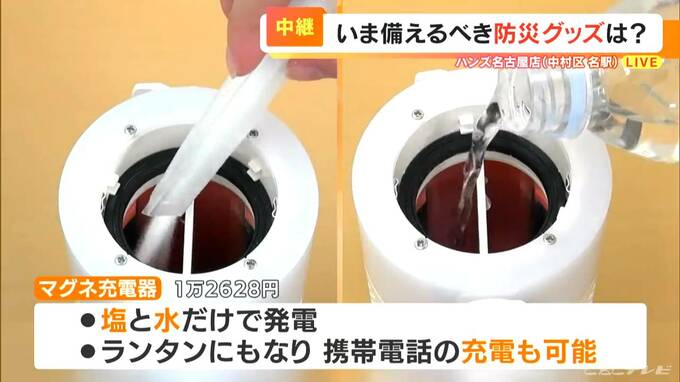 これは、マグネシウム棒・塩・水を中に入れると、電気が発生する仕組み。その電気でスマートフォンを充電したり、ランタンとして使ったりすることもできます。