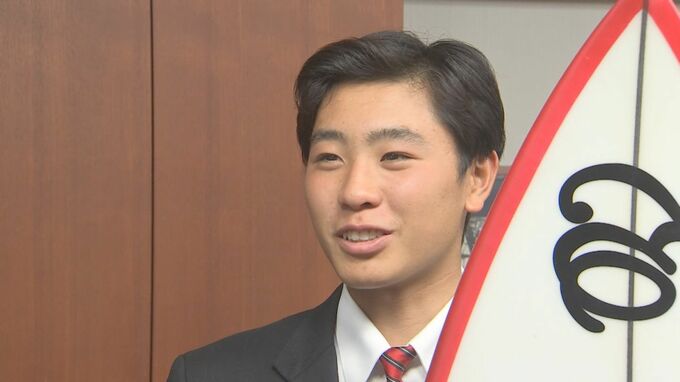 サーフィンの国内大会で数々の好成績を収め、ジュニアランキング1位となった高校生プロサーファー・浜矢凪選手が佐伯市役所を訪れ、今後の活躍を誓いました。大分県佐伯市蒲江に住むプロサーファー・浜矢凪選手(…