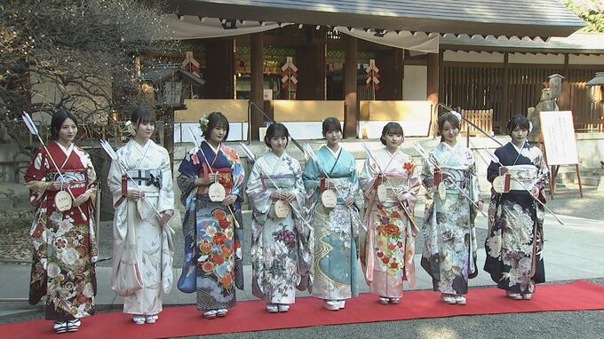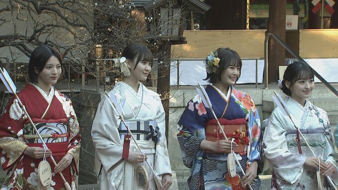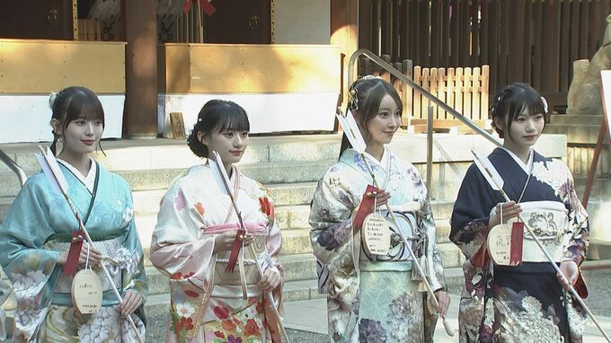 乃木坂46の今年成人を迎えるメンバー8人が東京・乃木神社を参拝し、振袖姿を披露しました。
