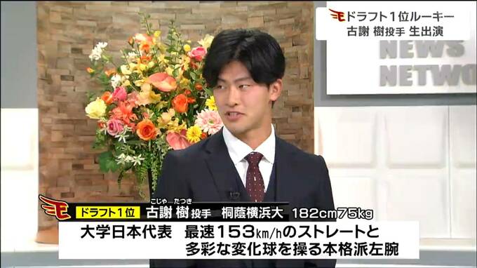 楽天イーグルスのドラフト1位ルーキー古謝樹(こじゃ・たつき)投手がtbcテレビのNスタみやぎに生出演しました。テレビ生放送は初めてという古謝投手、高校まではプロ野球選手を目指していなかったなど、意外な話が飛び出しました。楽天期待の新人選手の素顔に迫りました。
