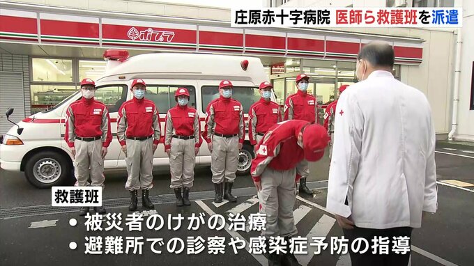 10日、石川県に派遣されたのは庄原赤十字病院の医師や看護師ら8人による救護班です。被災者のけがの治療にあたるほか、避難所での診察や感染症の予防に繋げる指導なども行う予定です。