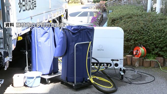 静岡県の対口(たいこう)支援先の石川県穴水町に藤枝市の職員4人と共に出発したのは、AI技術を活用したシャワー設備や最新の多目的支援車や簡易水洗式トイレを積んだトイレカーです。
