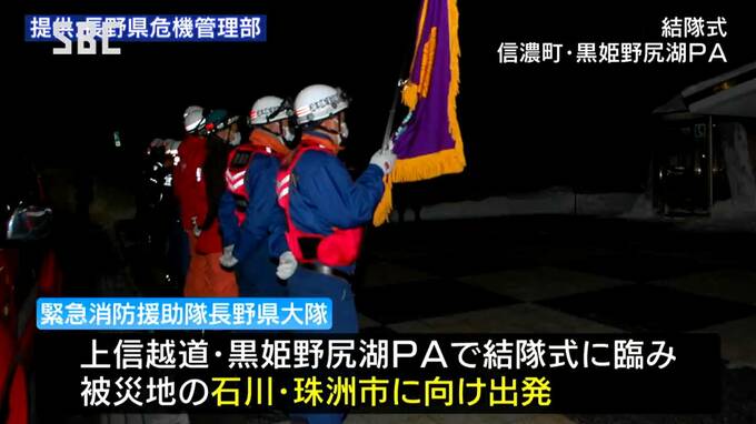 最大震度7を観測した能登半島地震の救助活動などにあたる長野県の緊急消防援助隊が10日未明、被災地に向け出発しました。