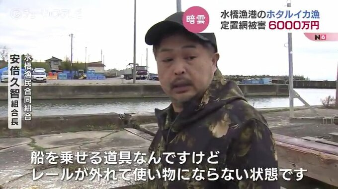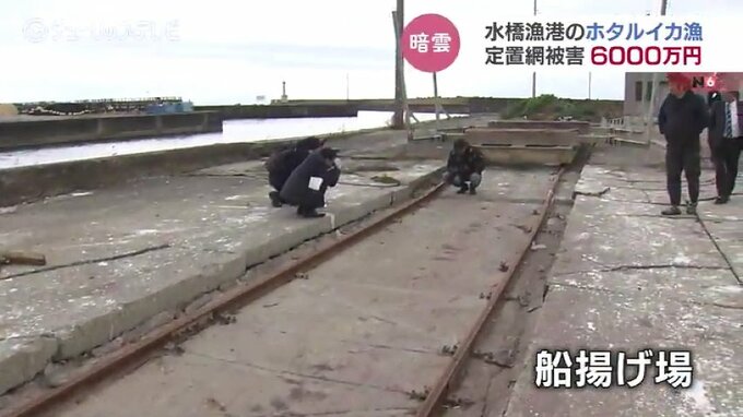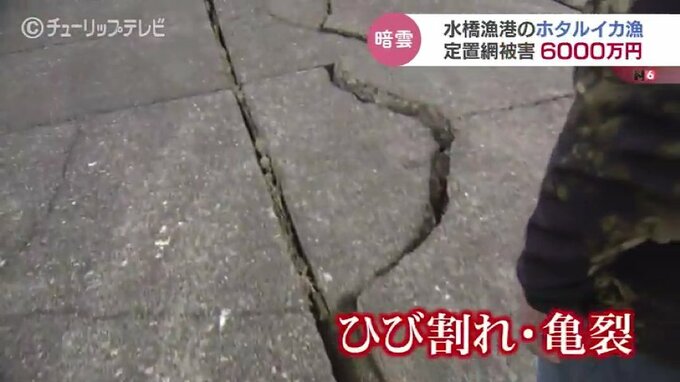 富山湾のホタルイカ漁に大きな打撃です。ホタルイカ漁の水揚げが8割を占める富山市の水橋漁港は、地盤沈下のため荷さばきが事実上できない状態です。漁港では被害額6000万円以上とみていて、漁港関係者は春のホタルイカ漁も縮小せざるを得ないと肩を落としています。