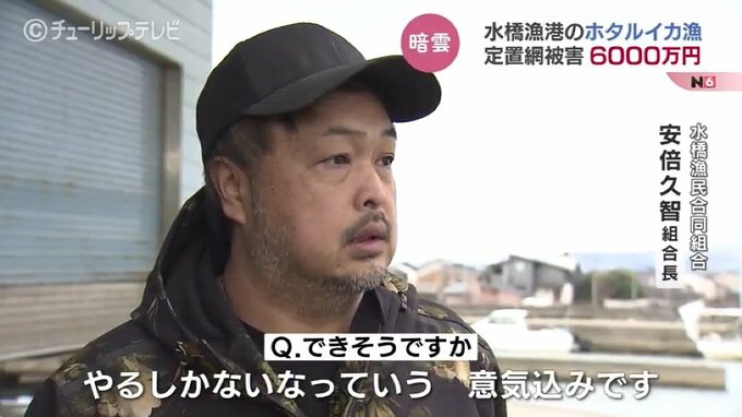 水橋漁民合同組合 安倍久智組合長:「行政のスピーディな対応と、自分たちも生活かかってるんで、なるべく復旧して。例年通りの水揚げができればなと思っています。(質問:できそうですか)今のところはできそうとかじゃなく、やるしかないなっていう意気込みです」