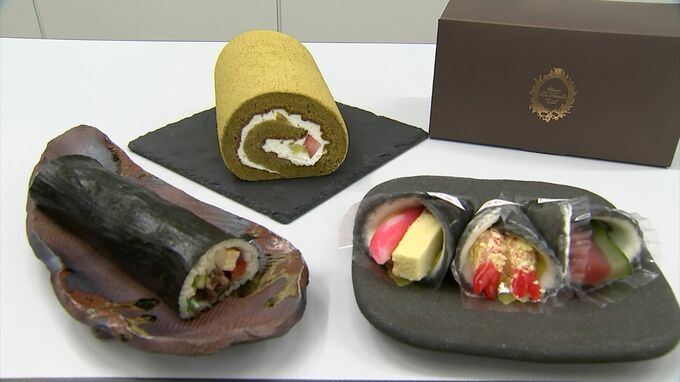 酢飯の代わりにうどんを使い、イリコの出汁のジュレが入った恵方巻きや、イチゴの「さぬき姫」や和三盆などでマグロやエビそっくりに作った和菓子の恵方ロールなど、全部で44種類が販売されます。
