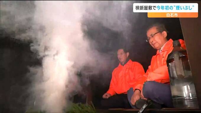 杉の葉を燃やし屋敷に住みついた害虫などを煙で追い出す「煙いぶし」が、宮城県白石市の「検断屋敷」で今年初めて行われました。白石市小原の県指定有形文化財「検断屋敷」では、今年初めての煙いぶし、「初いぶし…