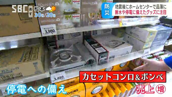 また、停電に備えようと、カセットコンロとガスボンベの売り上げも増えています。