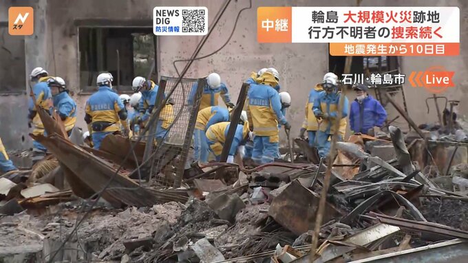 能登半島地震から10日目。石川県輪島市の大規模火災が発生した現場から中継でお伝えします。今月1日の地震で大規模火災が発生した石川県輪島市河井町の朝市に来ています。きょう午前10時から、焼け跡に取り残され…