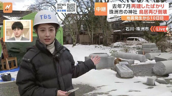 石川県珠洲市で、23年7月に再建したばかりにもかかわらず、鳥居が倒壊した春日神社から、能登半島地震による被害状況の詳細を日比キャスターが中継でお伝えします。
