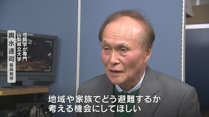 ただし、直下型地震は非常にゆっくりした(長い)周期で起きるわけですから、ある意味ではわからない、いつくるかわかんないという準備が必要だと思っています。山梨の活断層についても」