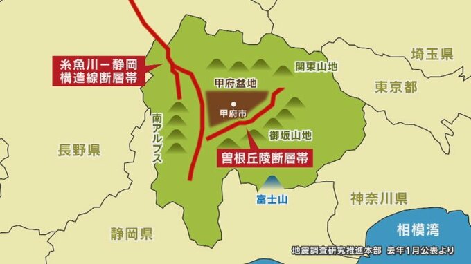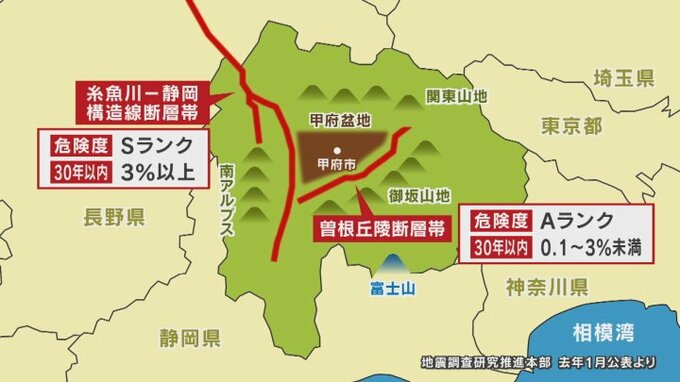 その断層について山梨県では糸魚川静岡構造線断層帯や曽根丘陵断層帯などが確認されるなか、能登半島地震に連動した県内での地震のおそれは…