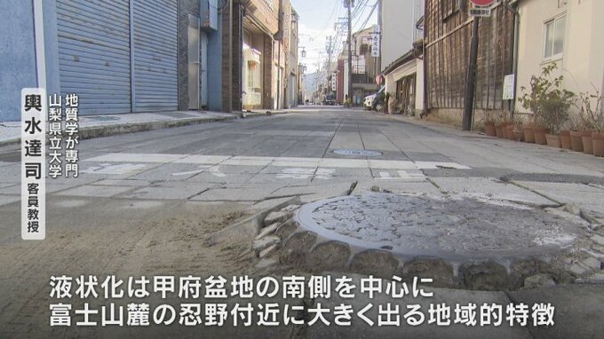 「液状化は甲府盆地の南側を中心に富士山麓の忍野付近にある程度大きく出るという地域的特徴がある。もう一つ山梨県は液状化以上に斜面の崩壊が非常に多く影響が出る地域性だと思います。標高差の大きい斜面を多く持っている山梨県ですから地震災害では斜面崩壊に一番注意しなければいけない」
