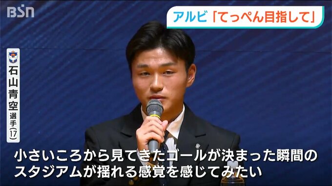 新入3人の中には県内出身の選手も。燕市出身でアルビのアカデミーでプレーしてきた石山青空 選手(17)です。