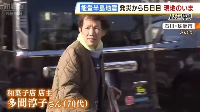 珠洲市で2日間取材を続け、私はようやく4日午前、和菓子店「多間栄開堂」の多間淳子さんと避難所で再会することができた。創業約百年、地元の銘菓を作り続けてきた多間さん。大地震が発生した1日夕方は、正月用のお菓子作りをしていたという。