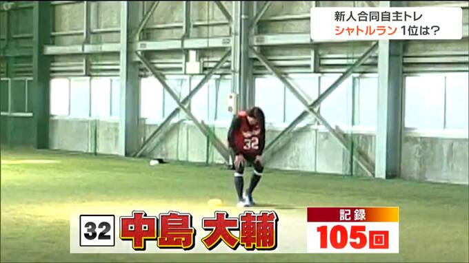合同自主トレで新人を待ち受けたいたのは、毎年恒例のシャトルラン。リズムに合わせ20mを往復しその回数を競います。体力のみならず、途中で諦めないタフな精神力が求められます。
