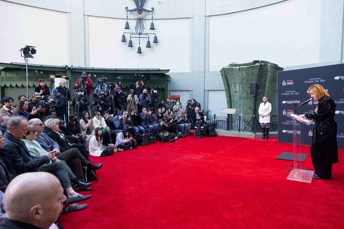 X JAPANのYOSHIKIさんが、米ハリウッドのTCL チャイニーズ・シアターで、YOSHIKIさんの手形・足形完成をお披露目するセレモニーに出席。