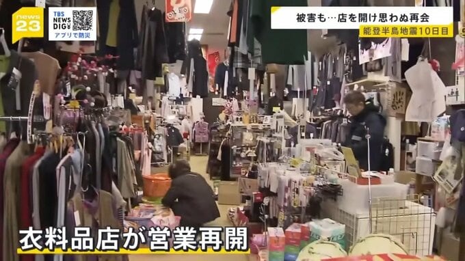 震災から10日目。営業を再開した衣料品店があります。店内にはまだ亀裂が入ったまま。修復のめども立っていませんが、地元の人たちの要望に応えたいと、家族総出で店内を片付け・再開にこぎつけました。