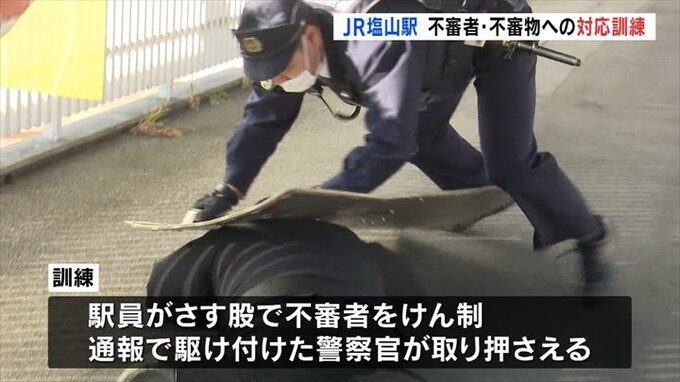 訓練は10日に日下部警察署やJR東日本などが協力し、JR塩山駅のホームにナイフを振り回す不審者が現れたという想定で行われました。