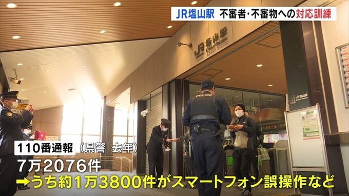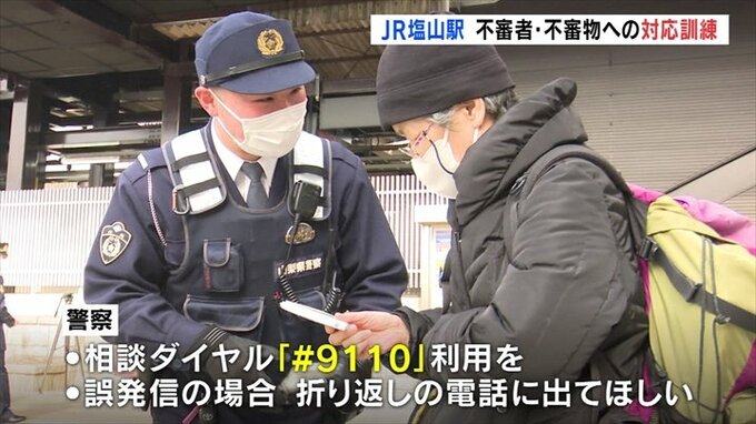 1月10日の「110番の日」に合わせて警察による不審者や不審物への対応訓練がJR塩山駅で行なわれました。