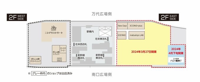 2階の『EAST SIDE』が3月27日に開業することがわかりました。