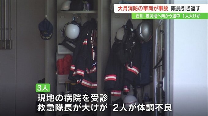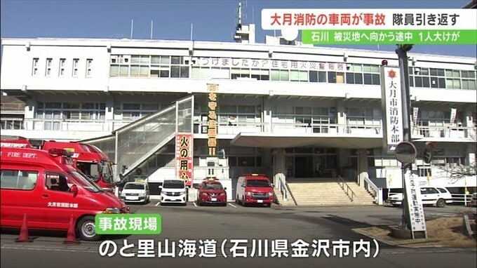 能登半島地震を受け被災地へ向かっていた山梨県の大月市消防本部の車両が10日、石川県内で追突事故を起こし、1人が大けがをしたことがわかりました。