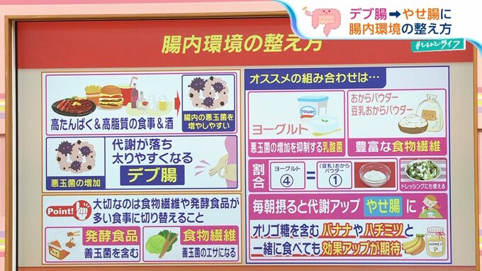 腸内環境は全身に影響しますので、代謝が落ちて太りやすくなる“デブ腸”につながってくるんです。