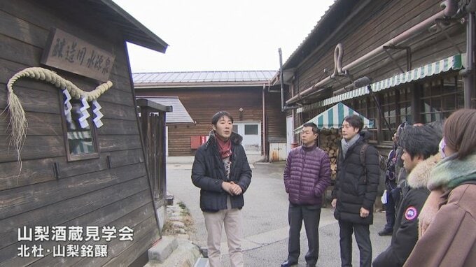 富裕層向けのホテルの関係者らを招いた酒蔵の見学会が、山梨県北杜市で開かれ、高品質な酒造りの産地をPRしました。