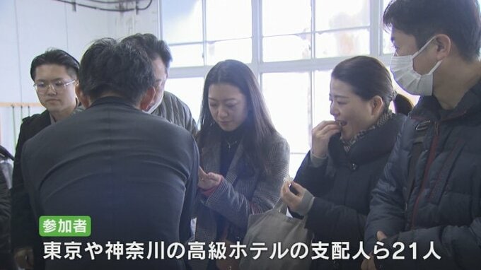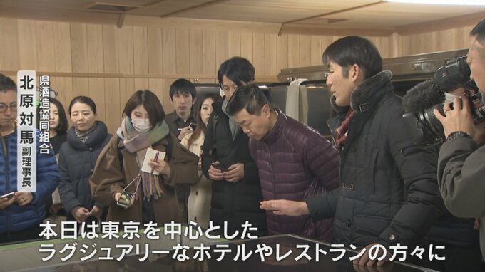 見学会は県と県酒造協同組合が初めて開いたもので、東京や神奈川の富裕層向けホテルの支配人や飲食店のソムリエなど21人が参加しました。
