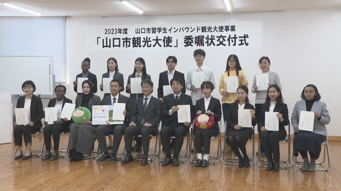 観光地として一躍、脚光を浴びることになった山口市の魅力を国内外に発信してもらおうと、研修を受けた留学生が市の観光大使を委嘱されました。