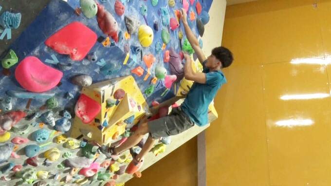 力を抜く登りも力を抜いて登ろうというより、普通に意識しなくても力を抜いちゃうんですよ。力を入れる時は意識しなきゃいけないんですけど、もう無意識に感覚的に力を抜いちゃう感じですね、今は。楽に登りたいっていう感じです。もちろん力を使った方が安定して登りやすいんですけど、体力も限界があるので、大丈夫なところは抜いて、やっぱりボルダリングって、ちょっと長さがあるので、下(位置の方)で力を使っていると消耗して落ちちゃうので、使わなくていいところは極力使わないで、使うところはしっかり使って、やっていく。最初からガンガン腕の力を使うと上の方で消耗して落ちる。力を抜いてここはブレて落ちると思ったら、しっかり腕に力を入れる。その使い分けが得意です。使い分けるって言っても、完全にではなく、あそこは力を使えばいけたのになっていう部分も全然あるんですけど、そこを本当にどっちも鍛えて使い分けるんだったら、思い通りになります。