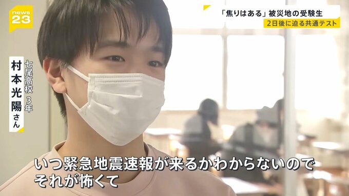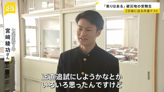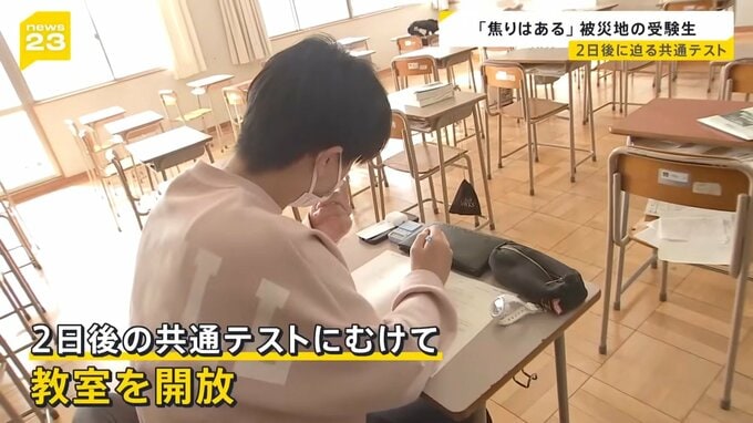 文部科学省は被災した生徒が1月13日、14日の本試験を受けられない場合は1月27日、28日に予定している追試験を受験できるよう特例措置をとるとしています。しかし、生徒は…