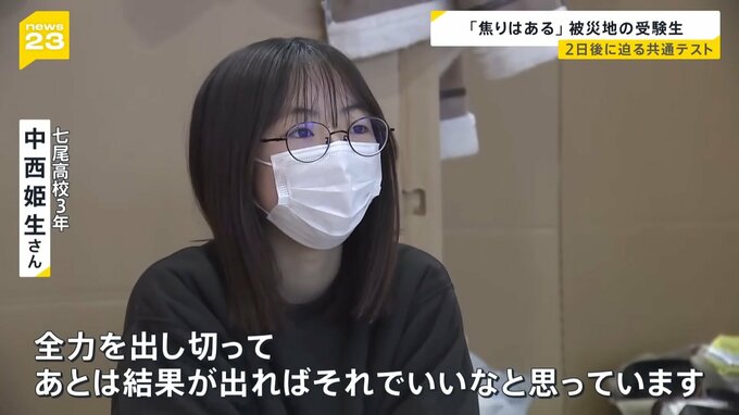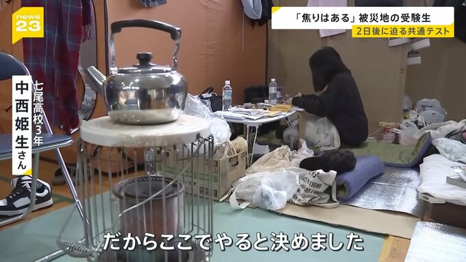 七尾高校3年生の中西姫生さんも、看護師を目指し共通テストを受験する予定ですが、今の勉強場所は避難所の片隅。