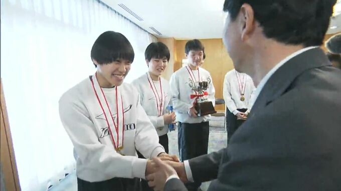 伊原木知事に優勝を報告、知事からは、「うれしい優勝をありがとう」と、感謝の言葉が掛けられました。