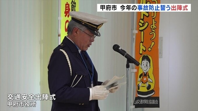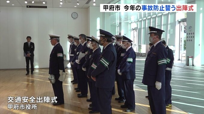 甲府市で市長や交通指導員が参加して今年1年間の交通事故防止を誓う式典が開かれました。