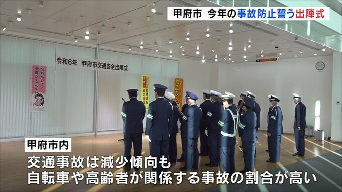 甲府市によりますと甲府市内の交通事故は減少傾向にあるものの、自転車や高齢者が関係する事故の割合が高い傾向が続いているということです。