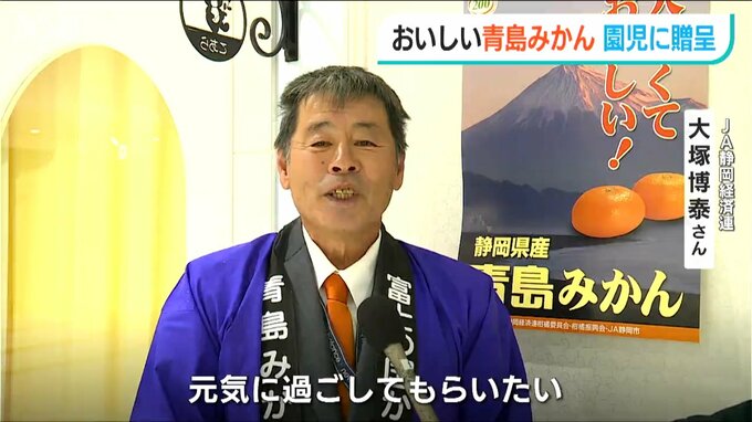 【JA静岡経済連 大塚博泰さん】「今が旬の青島みかんを子どもたちに食べてもらって風邪などひかないようにビタミンCをとってもらい元気に過ごしてもらいたい」