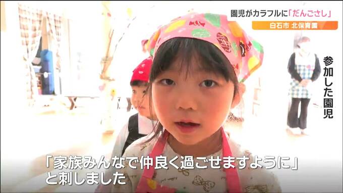 白石市の北保育園では、4歳と5歳の園児22人が「だんごさし」に参加しました。