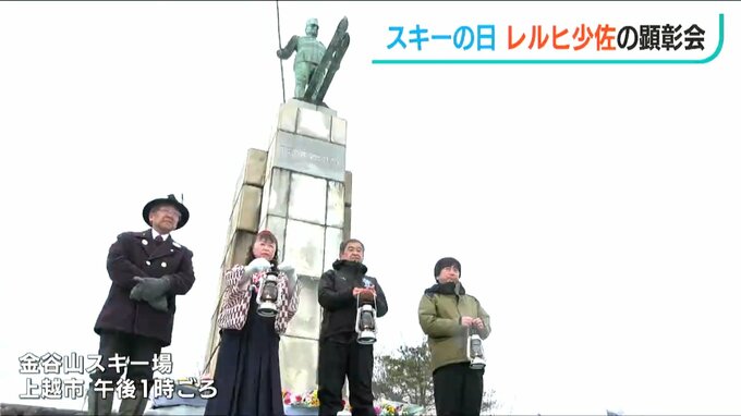 金谷山は113年前にレルヒ少佐が日本で初めて本格的なスキー指導を行った地で、12日の「顕彰会」では、レルヒ少佐が教えたという「一本杖スキー術」の披露や、レルヒ像への献花が行われました。