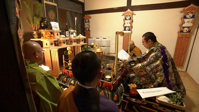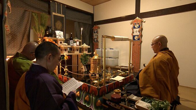 「温座」は13日夜まで行われ、僧侶4人が交代で祈祷を続けるということです。