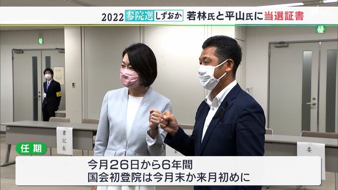 7月10日の参院選静岡選挙区で当選した若林洋平さん(50)と平山佐知子さん(51)に静岡県の選挙管理委員会から12日、当選証書が手渡されました。12日に静岡県庁で行われた当選証書付与式には、自民党の若林洋平さんと…