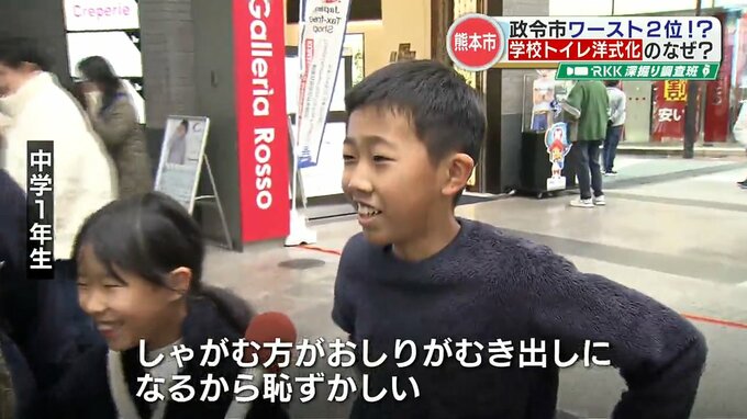 熊本・中央区の中学1年生「(使いやすいのは)僕は洋式だと思います。しゃがむ方がおしりがむき出しになるから恥ずかしい」
