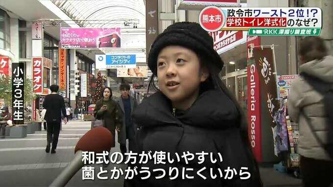 熊本・北区の小学3年生「和式の方が使いやすい。菌とかがうつりにくいから」